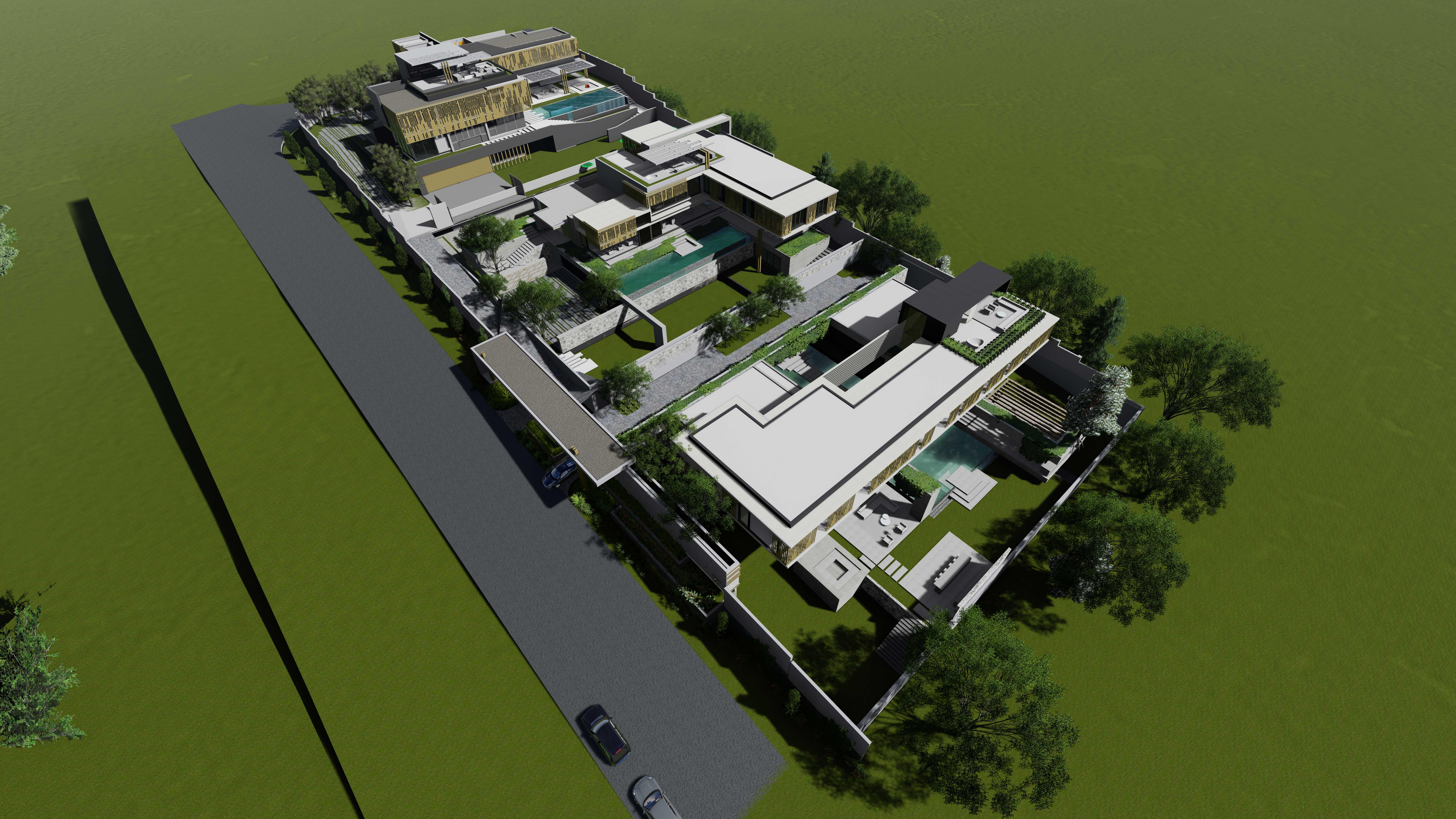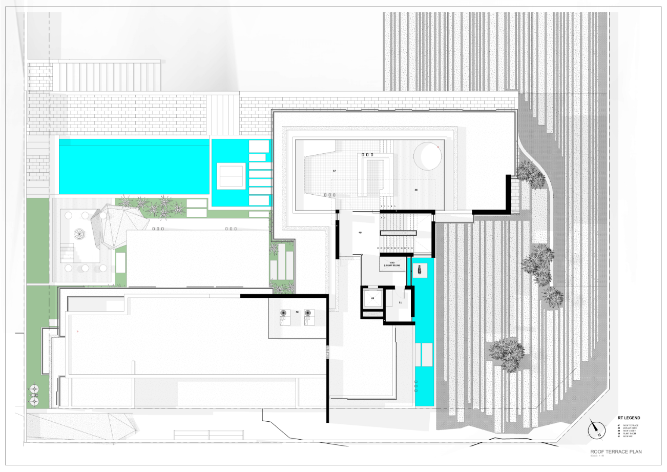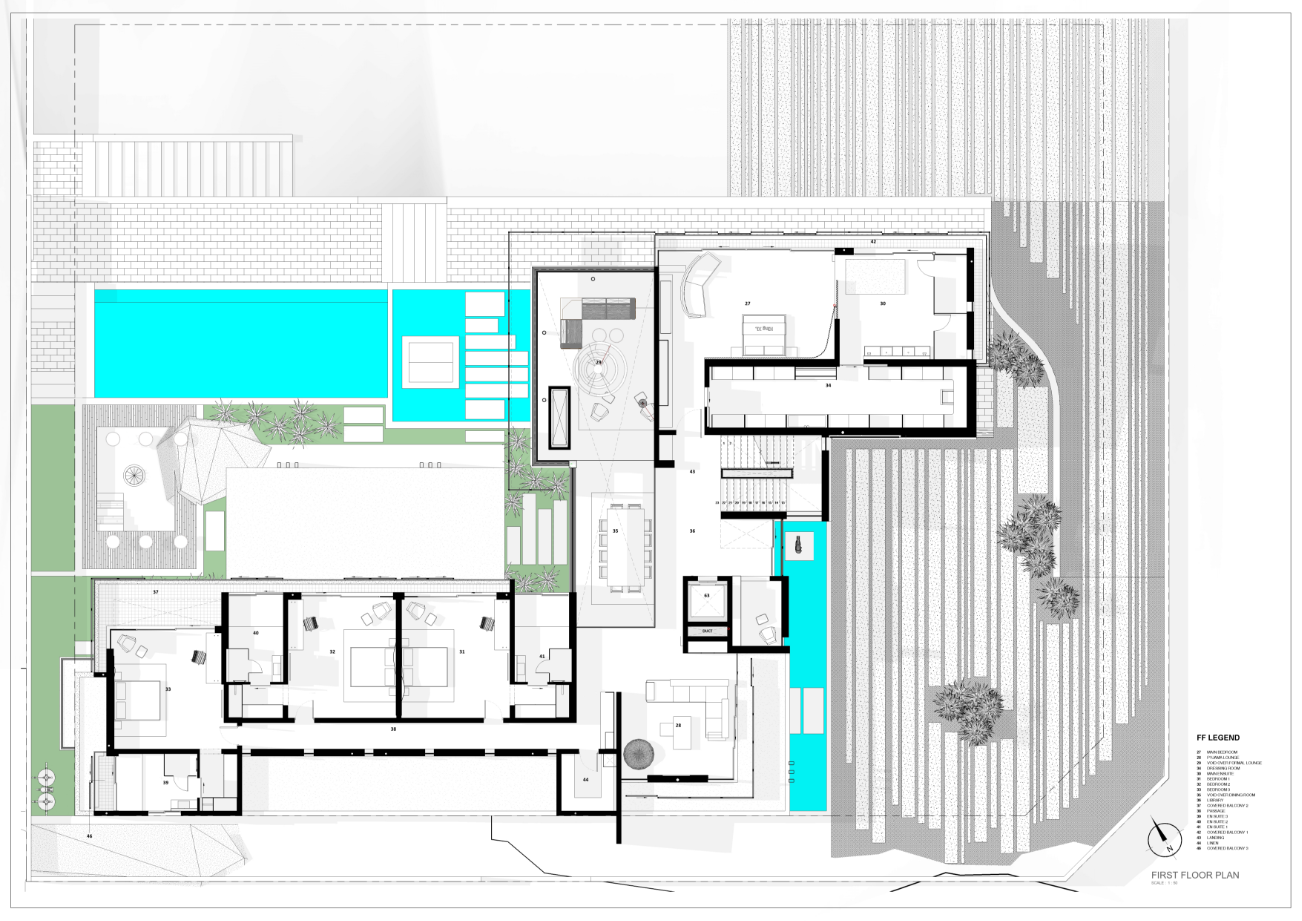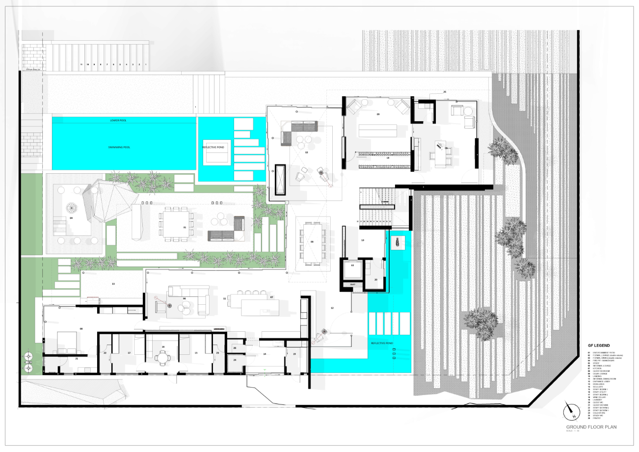 Infinity pool with rim flow and reflection pool for dip-toes-in-water sun loungers